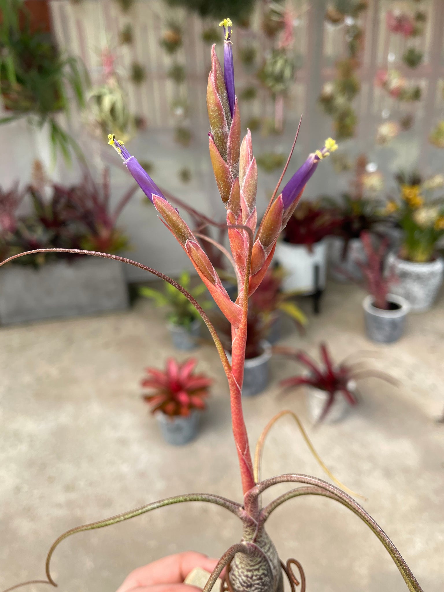 To care for your T.butzii, make sure that it receives bright indirect sunlight throughout the day. It also prefers humidity, so in between waterings, you might want to mist your butzii plant. Water at least once a week, and as with all bulbous based air plants, be sure to shake out the excess water from the base to prevent rot.