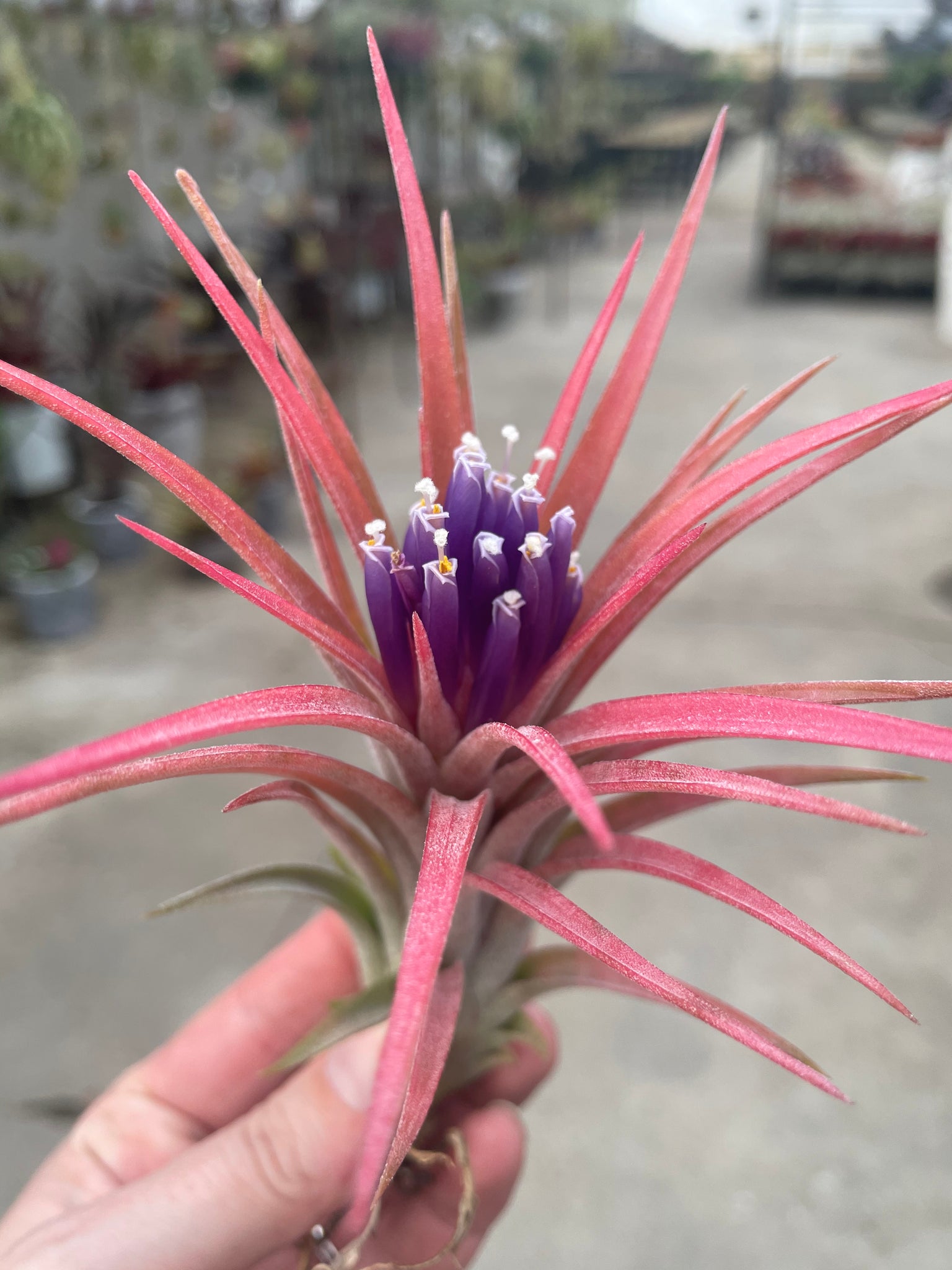 All leaves turn a gorgeous pink/red color during bloom with short inflorescence and purple tubular flowers. Likes Strong indirect light, partial direct light.